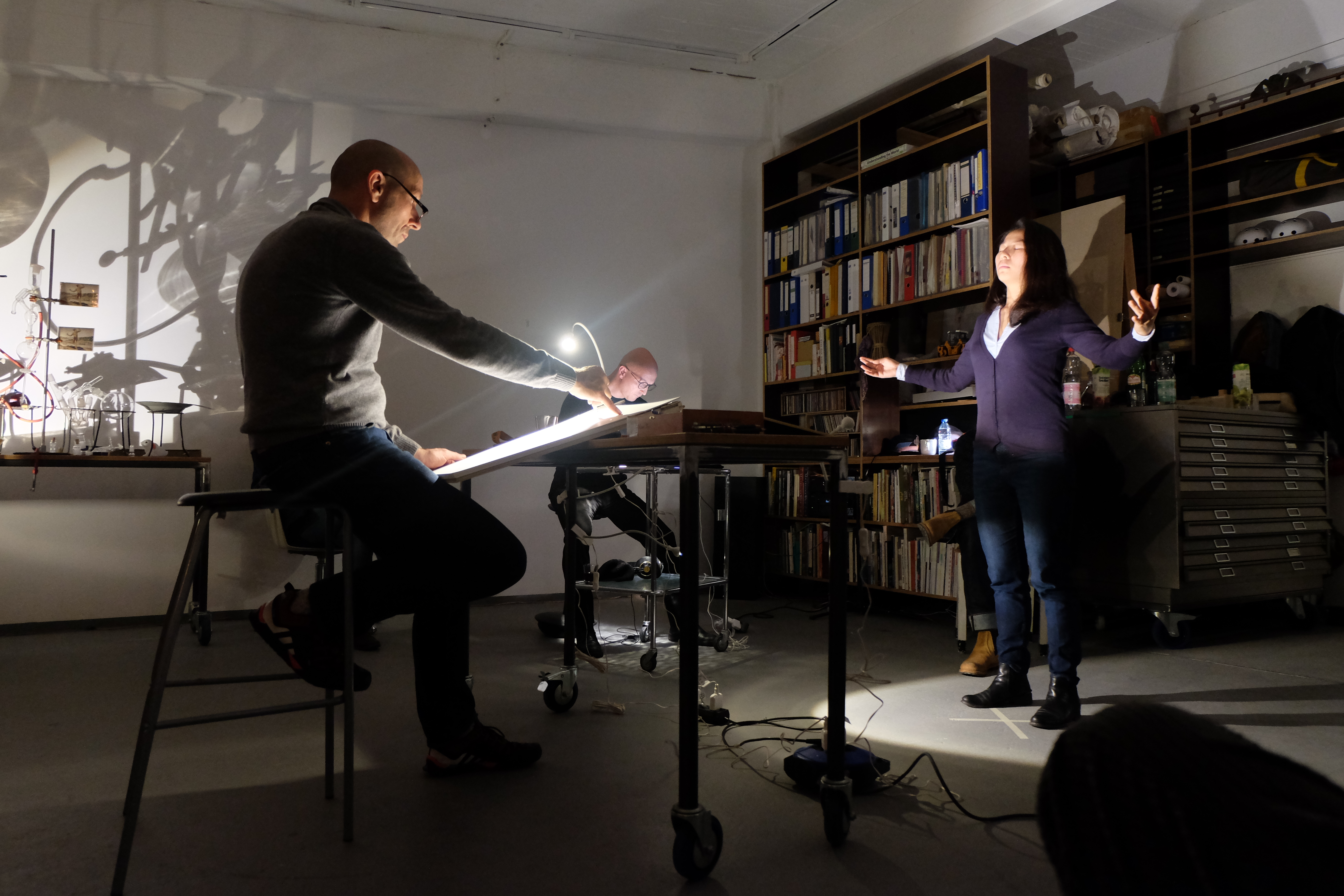 At the end of the process, the exhibition is opened in form of an audio/visual installation or of an audio/visual concert.